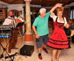 Nicht nur ,,on the road“ gab es Höhepunkte. Im Kloster Neustift nahe Brixen genossen wir nach sachkundiger Führung durch den Weinberg noch eine launige Weinprobe mit Kellermeister Hans. Alleinunterhalter ,,Robert“ aus dem Pustertal erfreute uns an einem Abend mit gutem Gesang, begleitet von Ziehharmonika und Gitarre. Bei – natürlich - klassischer Volksmusik, aber auch moderner Tanzmusik, waren Willy und René fast bis zur Erschöpfung die großen Eintänzer. Da hatten die Damen viel Spass….