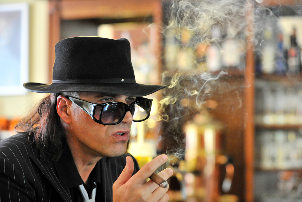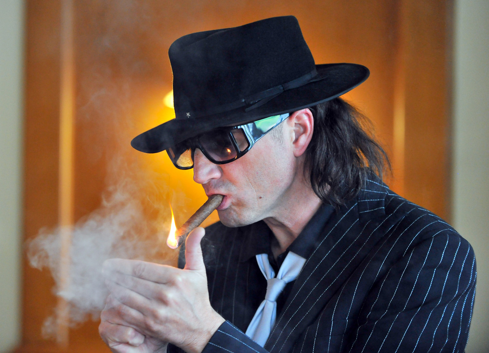 Ein sinniger Blick unterm tief ins Gesicht gezogenen Hut mit Stern, über die Sonnenbrille hinweg, mit typischer Udo-Schnute: ,,Hey Leute, ahoi“, nuschelt Arndt Rödiger mit seinem Eierlikör-gekühlten Goldkehlchen allen Spürnasen und Geheimräten zu. Rödiger ist Udo Lindenbergs Vize Ego und legt mit dem Emigrantenschiff ATLANTIC AFFAIRS am 30./31. Oktober im Landestheater Eisenach an.